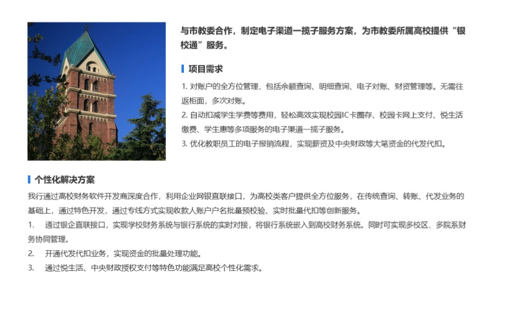 随着教育行业的不断规范化,高校对于财务管理信息化、自动化的需求越来越迫切,财务人员、教职员工、在校学生客户资源庞大、服务场景丰富,资源优化价值不断放大。